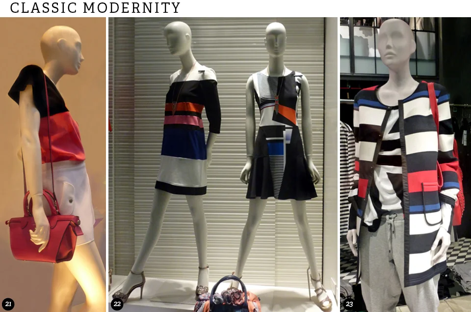 Black and white, plus red/white and blue were overwhelming early spring colour statements in Paris and Milan. European retailers usually receive merchandise closer to the actual season, and, indeed, there was only a sprinkling of newness in Paris this past month. However, Milan windows had transitioned into spring more extensively, not only with the traditional crisp graphic colour story but also with an abundance of pales and floral prints. Milan Fashion Week was about to take place at the end of February, an excellent opportunity to show the fashion world what the current spring season was going to be all about.