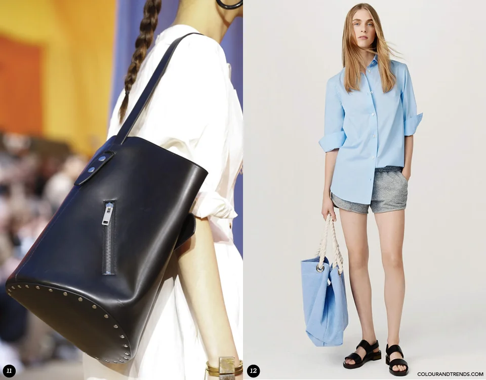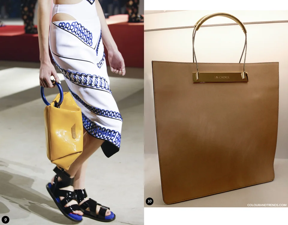 Sleek metal or resin handles on sleek, otherwise unadorned totes or fold-over bags have a modern vibe