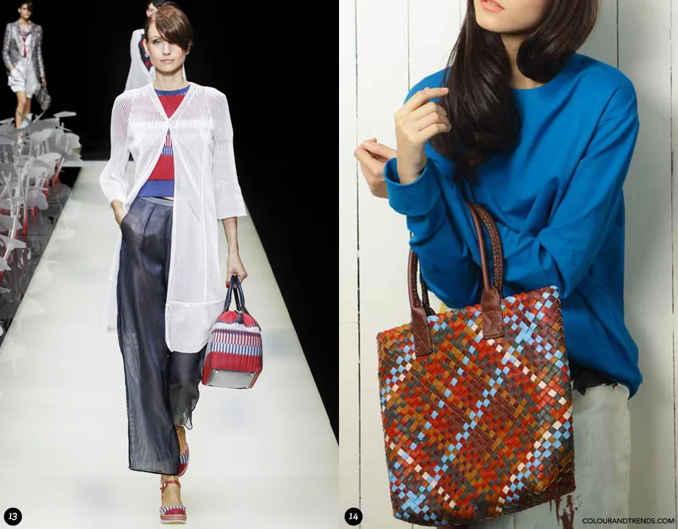 Colourful weaves in leather, straw or raffia are ideal summer material options for bags