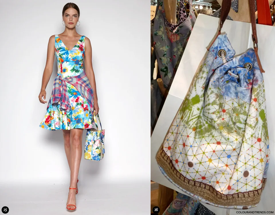 Flower power transcends into handbags. The rope espadrille bottom on a drawstring bag is a creative new treatment