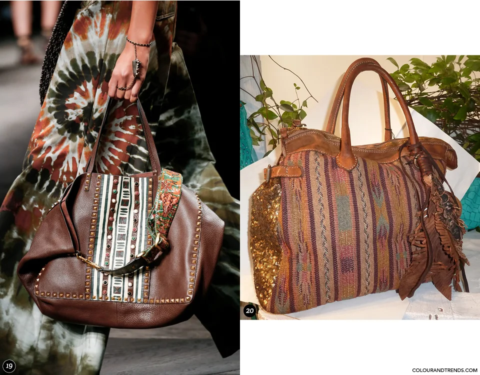 Ethnic decorations on brown leather bags give of a hint of Africa